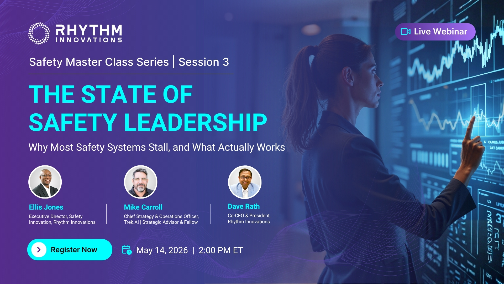 Many workers today drive vehicles and perform field tasks, exposing them to multiple safety risks. This session explores how Rhythm and SambaSafety create a unified risk view that protects distributed workforces through predictive analytics, continuous monitoring, and actionable insights.
